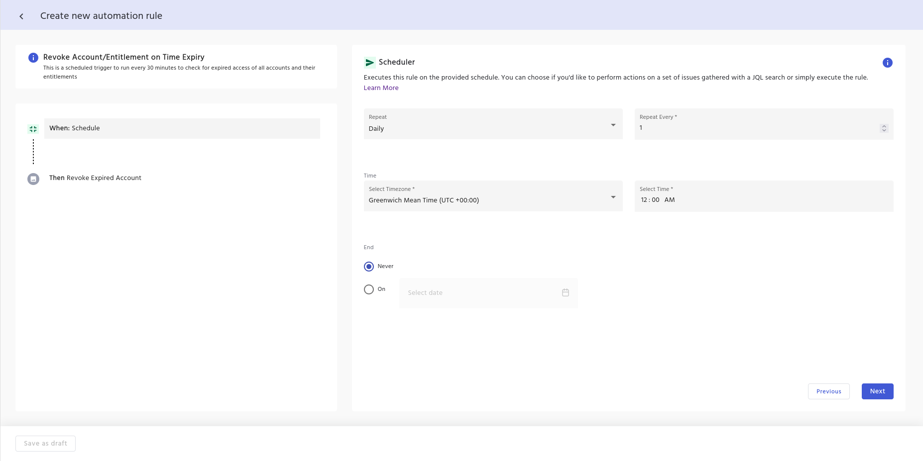 Why schedule? Regular runs ensure that any accounts or entitlements whose revoke date has just passed get cleaned up promptly.