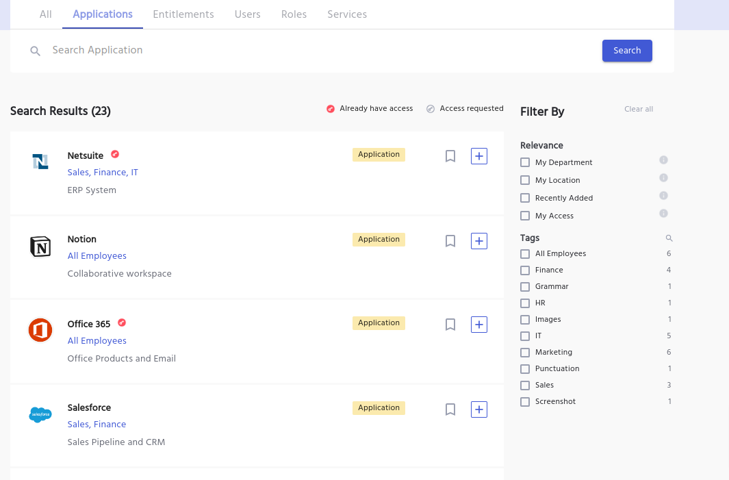 Just like applications, you can add the entitlements that you want to request access to the cart.