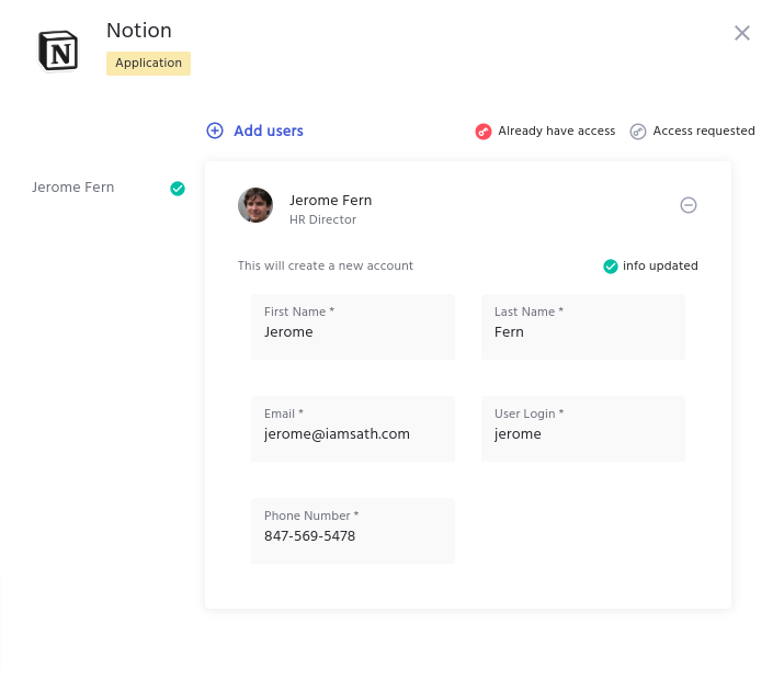 - Once the workflow is complete, IDHub would create a new account for the item.